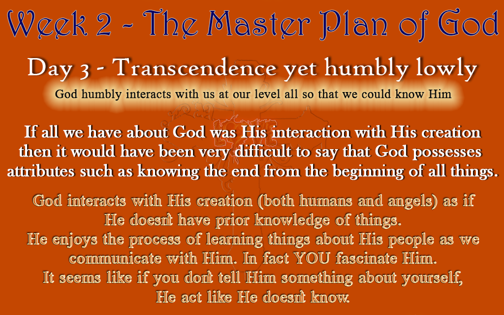 Now that we’ve got just a glance of the transcendence of God nature, let’s go back to the beginning to take a look at His master plan.