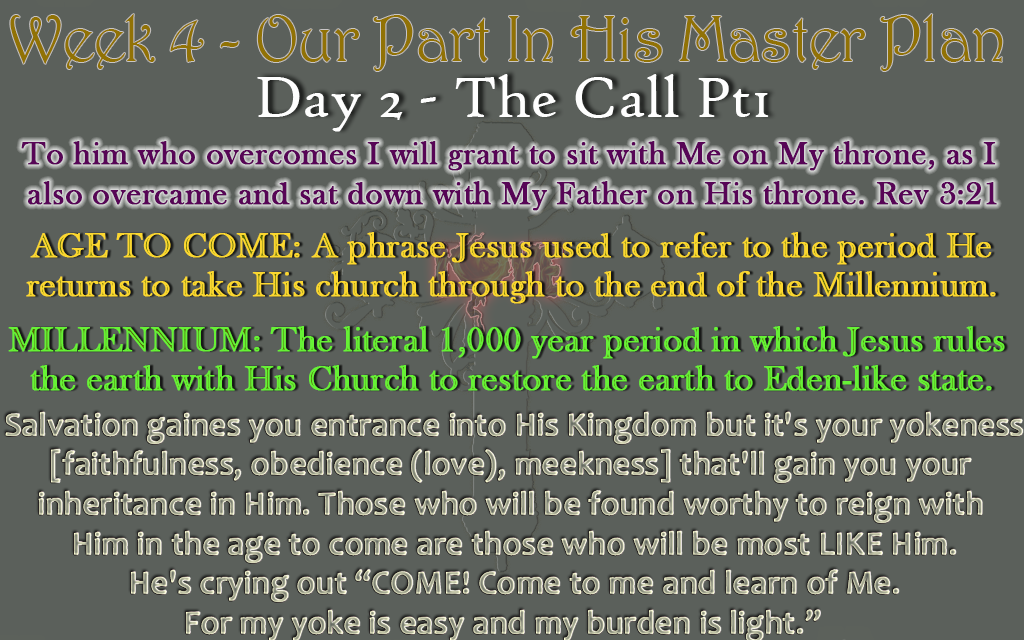 He’s looking, preparing, and choosing people who are yoked together with Him. Your salvation gained you entrance into His Kingdom but it’s your ‘yokeness’ [faithfulness, obedience (love), meekness and overcoming attitude] that’ll position you close to Him. Those who will be found worthy of reigning with Him in the age to come are those who will be most LIKE Him in this age. The reason He hasn’t put everything to its end is because His house is not full; there are many thrones still empty needing of people who will be found worthy to sit on them.